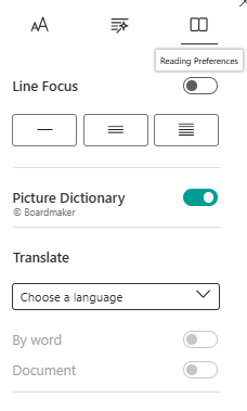 By opening Tools, students can access the Immersive Reader, which allows them to customise how they read and understand content.